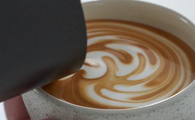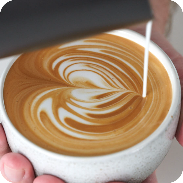 あとはカップにつやつやのマイクロフォームミルクを注ぐだけ!美しいラテアートを描き、多くの人を幸せをお裾分けしましょう。