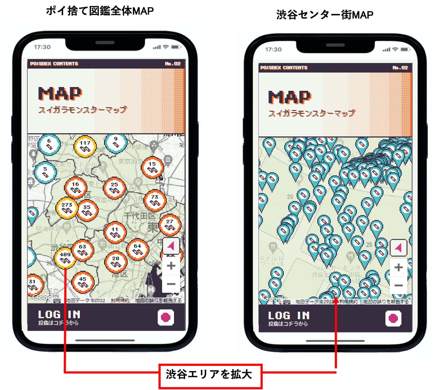 「ポイ捨て図鑑プロジェクト」は、ポイ捨てされた吸殻を“喫煙所に戻れず、迷子になった吸殻モンスター “ といった助けるべき存在として描き、誰もが簡単にゲーム感覚で参加できるポイ捨て問題の解決を目指すプロジェクトです。ポイ捨てされた吸い殻を撮影し、捨てられた位置情報と併せて投稿と拡散を行うことで、街のポイ捨て状況を可視化。ポイ捨てが多いエリアには喫煙所設置などの対応を検討してまいります。