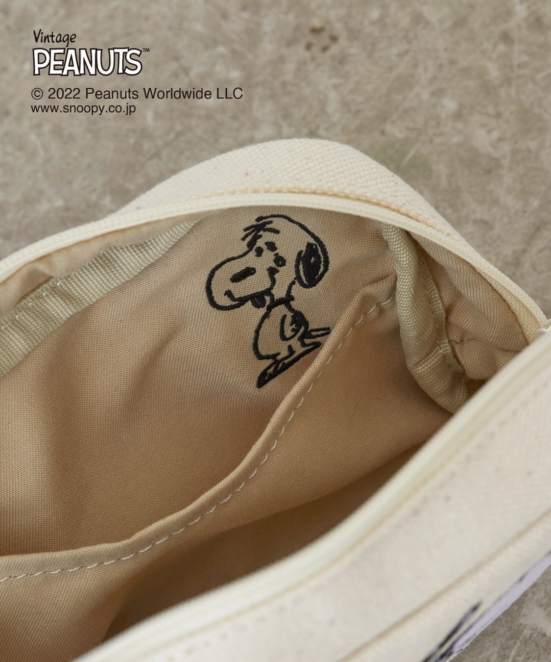 ファスナーを開けると中にはポケットがあり、内側にはスヌーピーが隠れています。