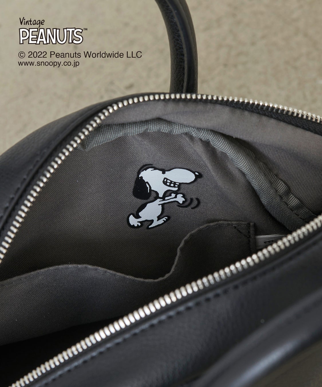 フロントとバッグの内装ポケットにかくれスヌーピーをプリントしています。