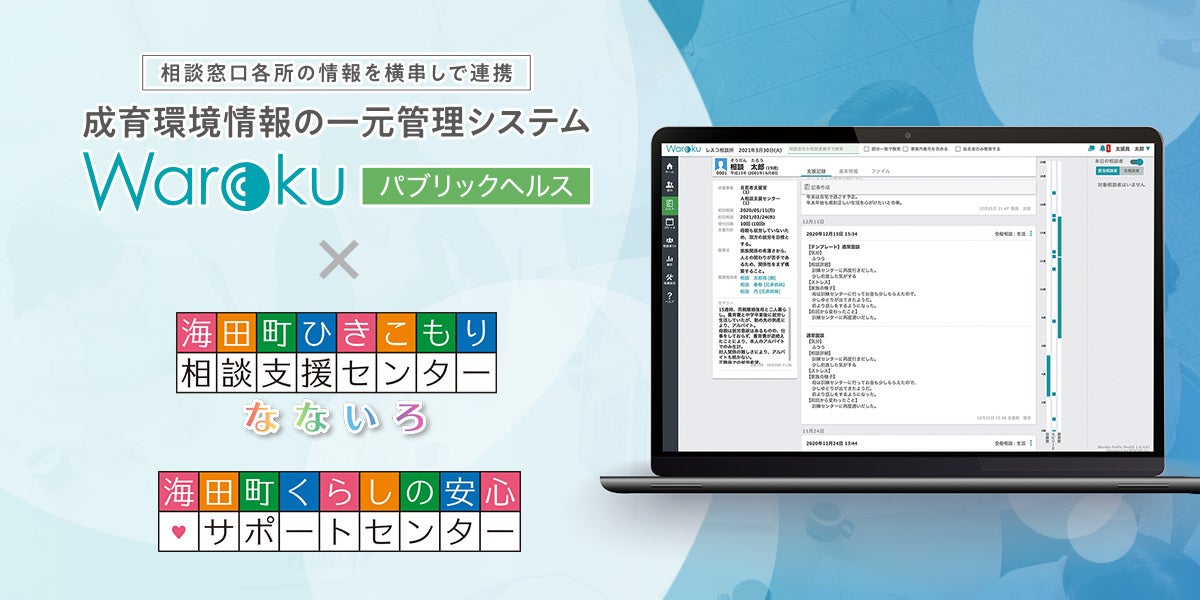 今回「Warokuパブリックヘルス」を導入する事業所は、「海田町ひきこもり相談支援センター なないろ」と「海田町くらしの安心・サポートセンター」の2事業所で、いずれも本支援事業の実施主体である広島県安芸郡海田町から委託を受けて活動しています。