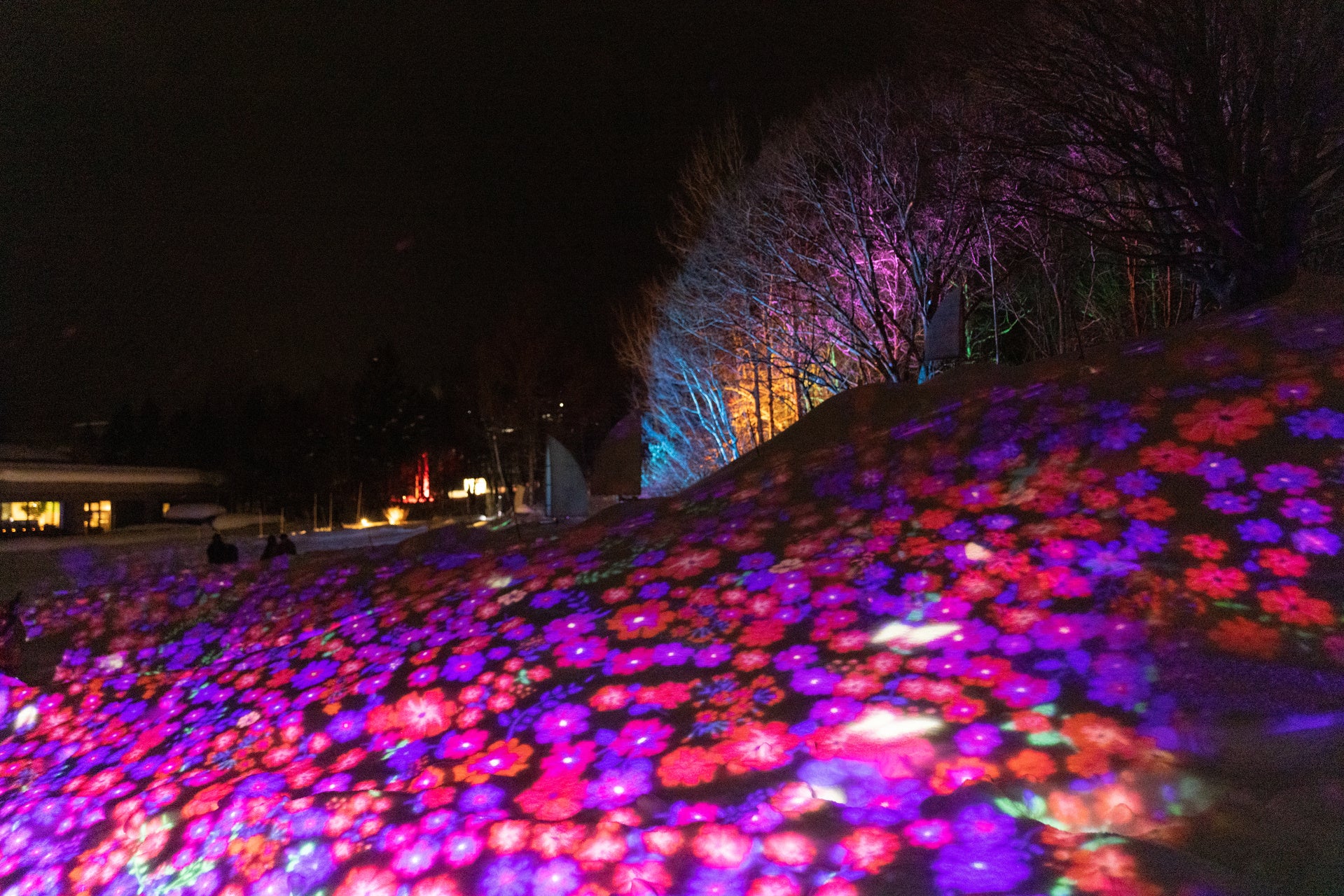 YUKIMI HANAMI最後のコンテンツは、雪原へのダイナミックなプロジェクションマッピング。
