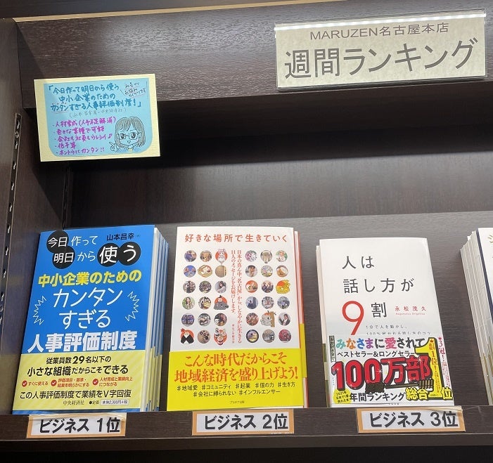 人材育成や組織の課題解決を通じて地元名古屋の経営者から支持を受ける あおいコンサルタント株式会社(代表取締役 山本昌幸)の11冊目の著書「今日作って明日から使う 中小企業のためのカンタンすぎる人事評価制度」がMARUZEN名古屋本店 ビジネス書部門 3月27日から4月1日週間ランキングで1位を獲得しました(ランキング表示期間 4月3日から4月8日)。