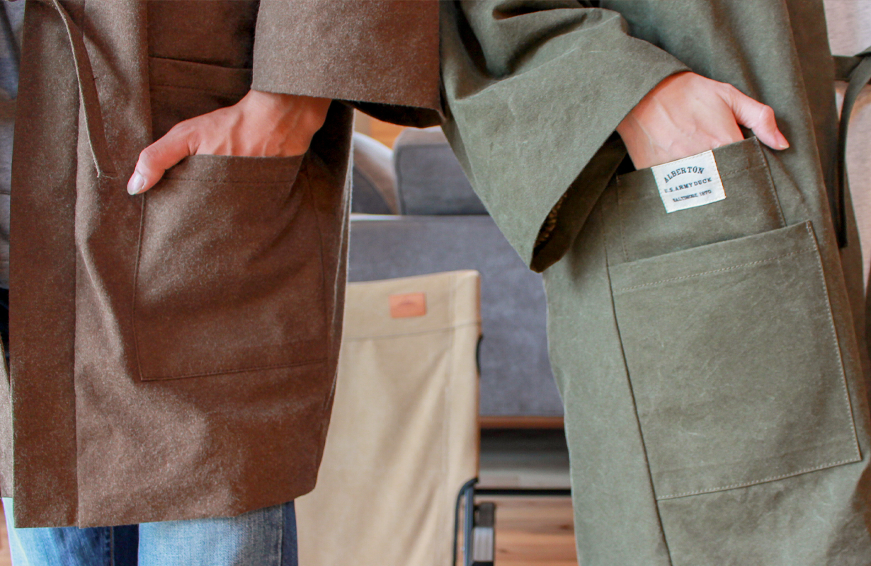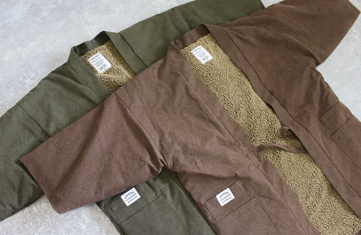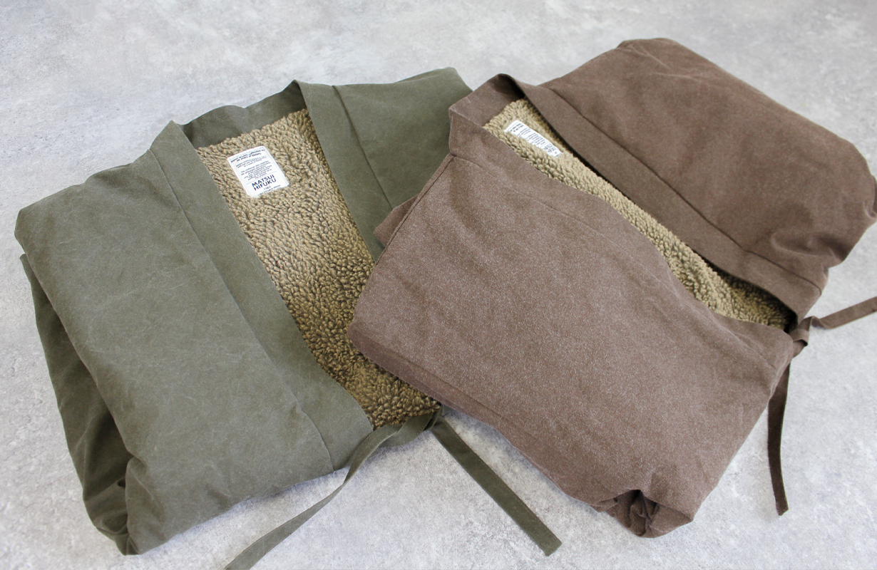 を同時に実現。馴染みのある形はそのまま、生地にはARMY DUCKを採用し今の時代のスタイルに合った特別な褞袍に仕上げました。