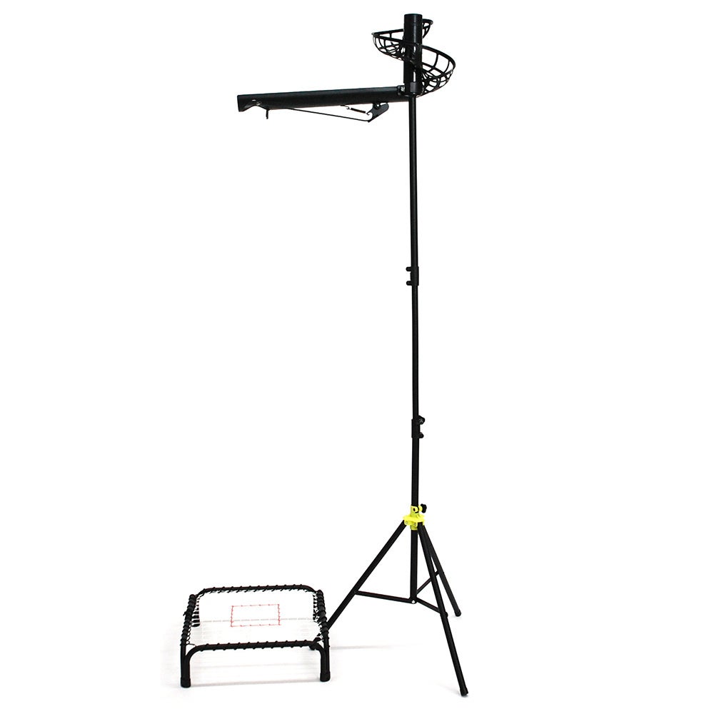 落下ティーの練習方法は落下するボールを付属のトランポリンネットを用いて跳ねあげ、そのボールを打つというものです。ボールが上から下へ、下から上へと行き来する間、我慢して待つ、この動作があることで自然と“間”を習得することができます。
