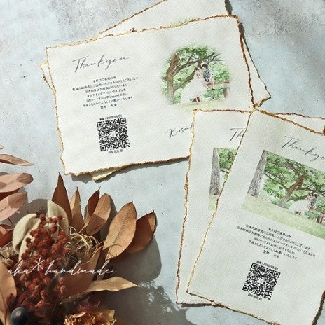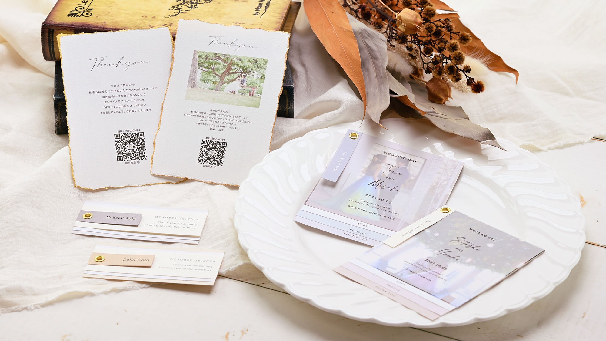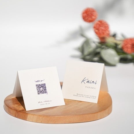 2024年から、ヒキカのQRコードをPNGデータ出力できるようになり、新郎新婦がペーパーアイテムをDIYするときに、そのQRコードをエスコートカードや席札に直接印字して利用することが増えてきている。