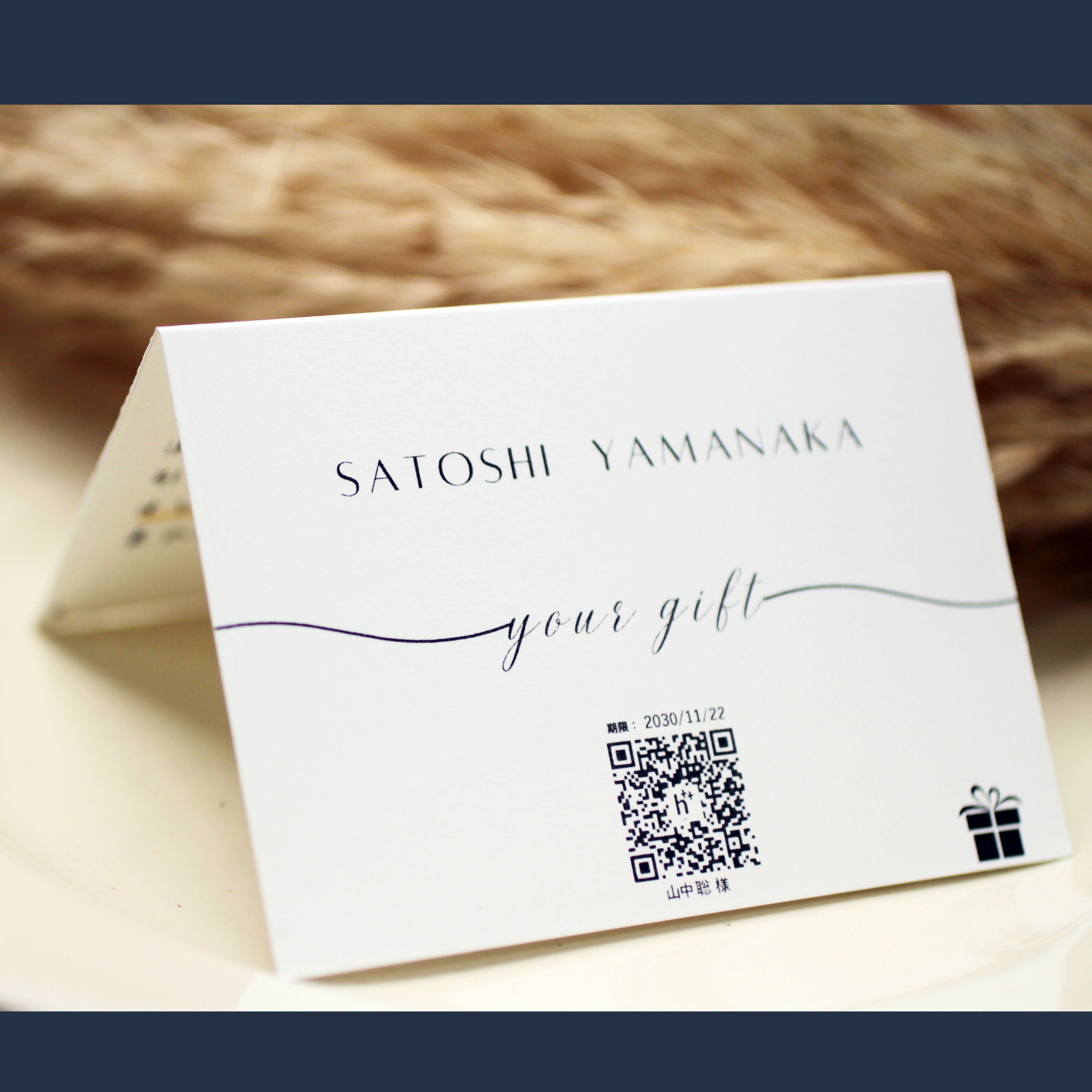 席札の裏面などにQRコードを印字するだけで、ギフトをゲストに渡せる。