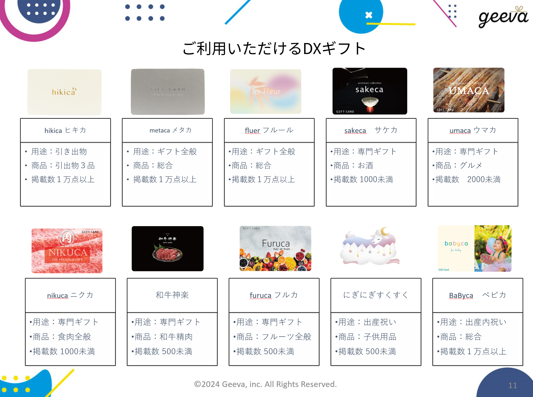 当社の2024年の新商品展開は、ブライダルだけでなく、ビジネス向けギフトECサイト「bizGeeva」と一般ギフトECサイト「祝いの杜」にて、多数のギフトカードブランドをリリースし、様々な形式で認定パートナーにご活用いただく予定である。それに合わせて、順次第2回の認定パート―ナーの申し込みが開始される。