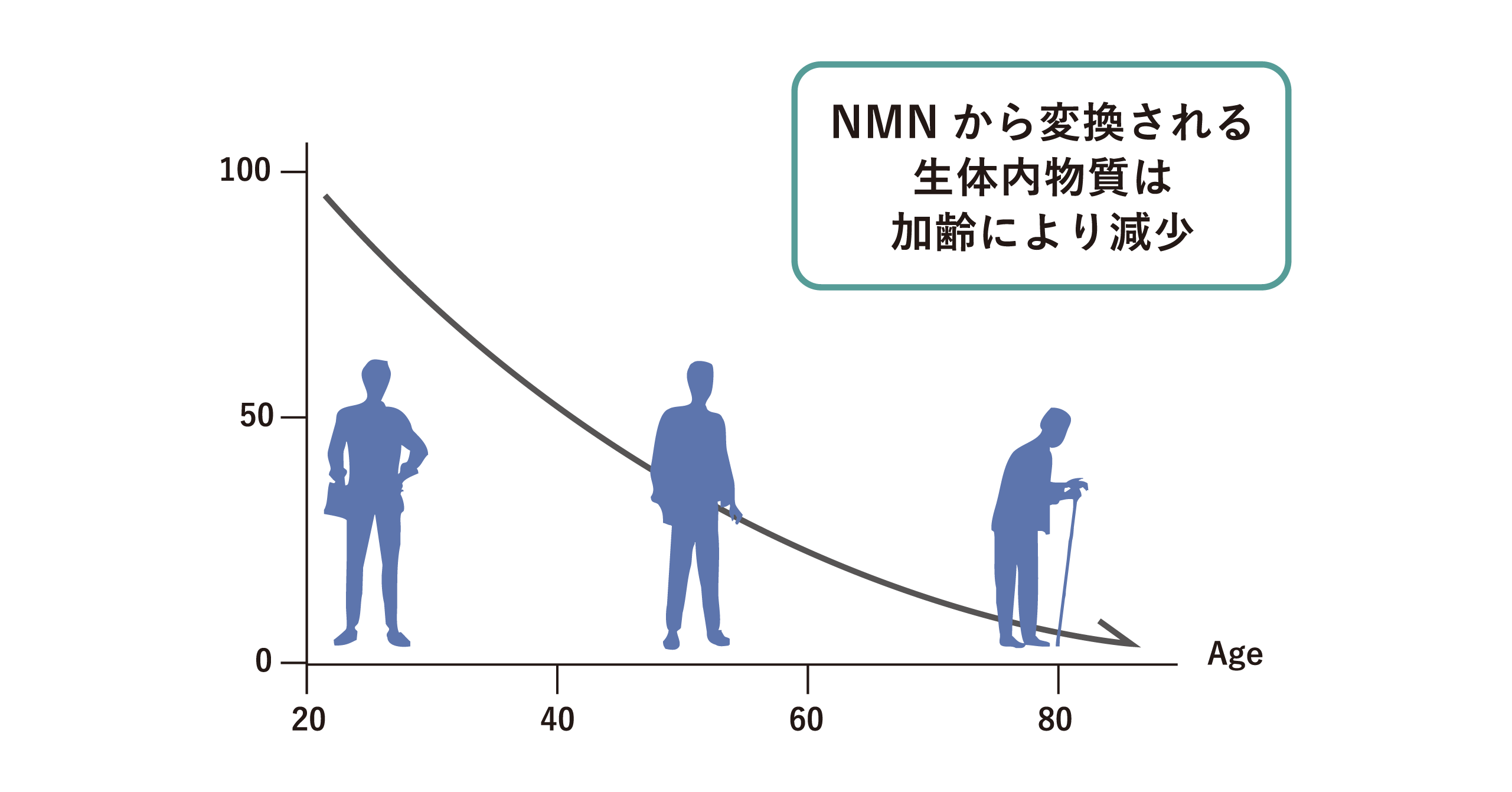 年齢を重ねるほどに減少する、生物の老化に深く関わりのある物質で、健康的な体のコンディション維持に重要であるとされています。