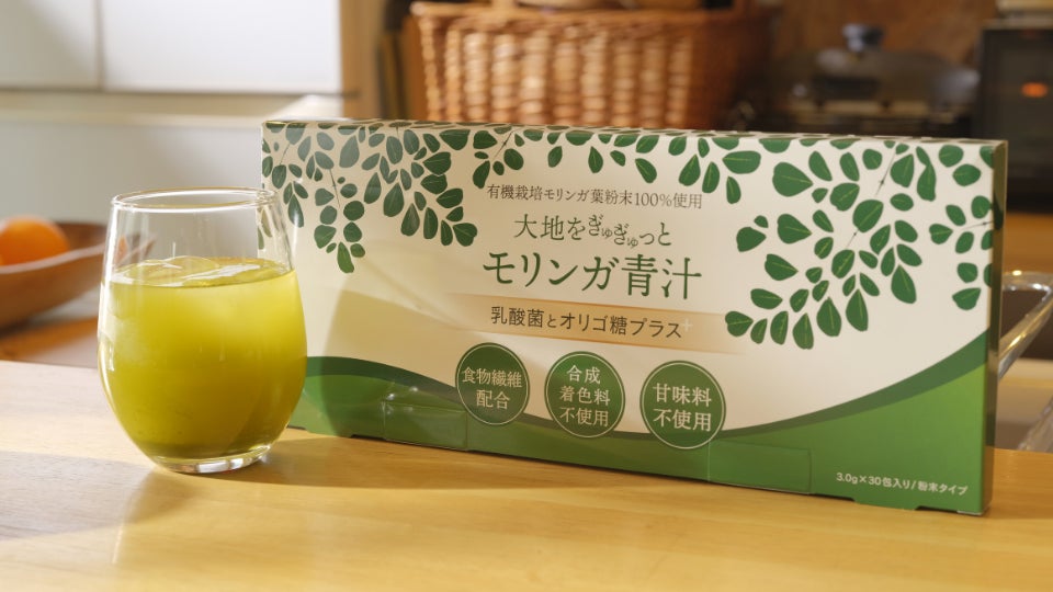 『大地をぎゅぎゅっとモリンガ青汁®』は有機栽培モリンガ葉100%使用・森永乳業のシールド乳酸菌®/ラクチュロースを配合した新しい青汁です。