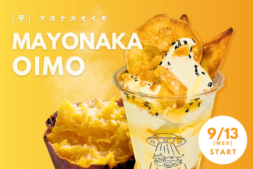 真夜中牧場は、夜の甘い誘惑を追求してきたアイスクリーム店として親しまれてきました。今回、秋の訪れとともに、国産紅はるかを贅沢に使った新商品「マヨナカオイモ」を押上本店・両国横綱横丁店で提供開始します。