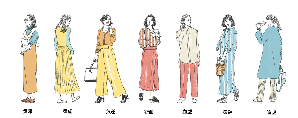 体質タイプのイラストには、各タイプをイメージするイラストをファッショナブルな女性で描き、漢方の「古風」「胡散くさい」といったネガティブなイメージを刷新し「洗練さ」や「上品さ」を表現しました。