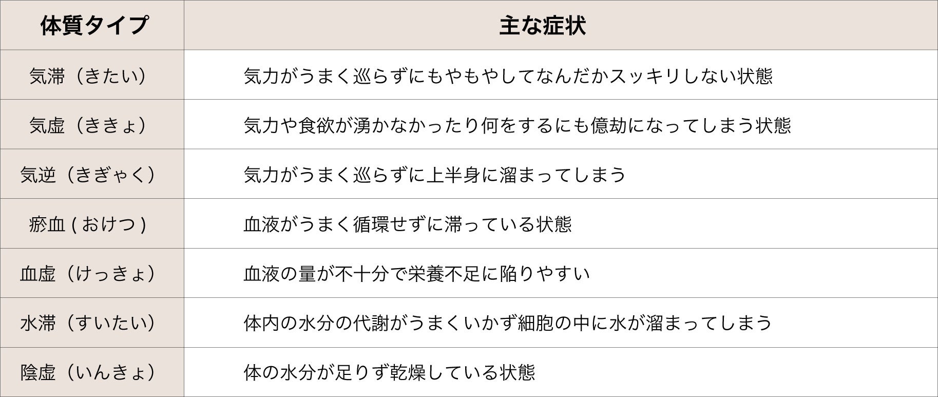 『体の声チェック』によって診断される体質タイプは全部で7タイプ。