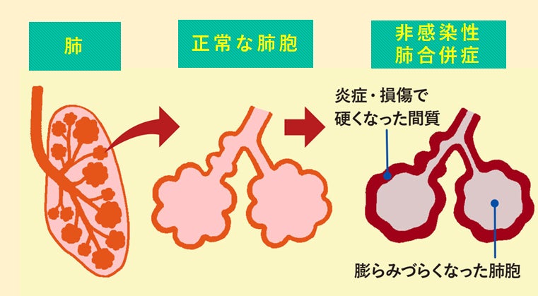 造血幹細胞移植は、通常の化学療法や免疫抑制療法だけでは治すことが難しい血液がんや免疫不全症などに対して、完治させることを目的として行う治療ですが、移植後の30%程度が非感染性肺合併症を発症し、患者のQOLが著しく低下するのみならず、死に至る生命に重大な影響を及ぼします。