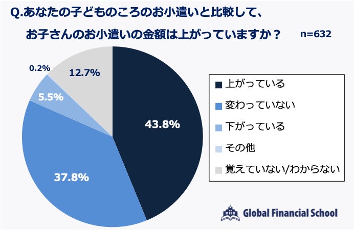 自身に比べて、子どものお小遣いの金額が増えたと感じる親は 43.2%。