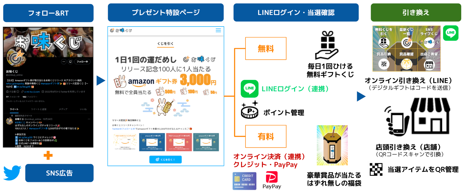 LINEやTwitterと連携してユーザーの体験価値を向上させるオンラインくじ「お味くじ」をリリース