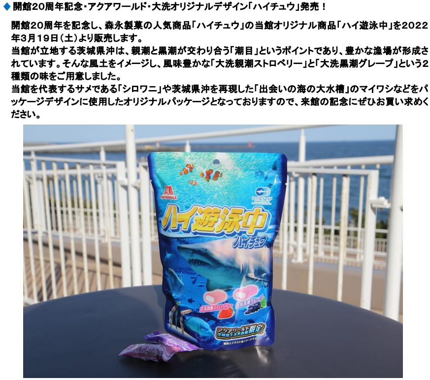 ■開館20周年記念・森永製菓「ハイチュウ」 コラボレーション商品「ハイ遊泳中」 (NEW)