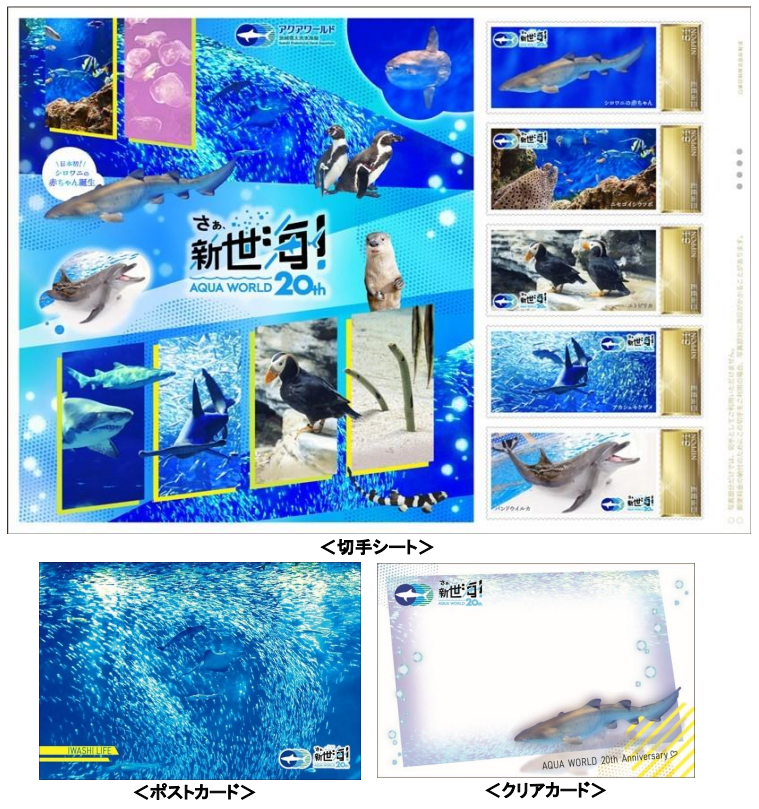 開館20周年を記念したオリジナルフレーム切手セット「さぁ、新世海!AQUAWORLD20th」を2022年