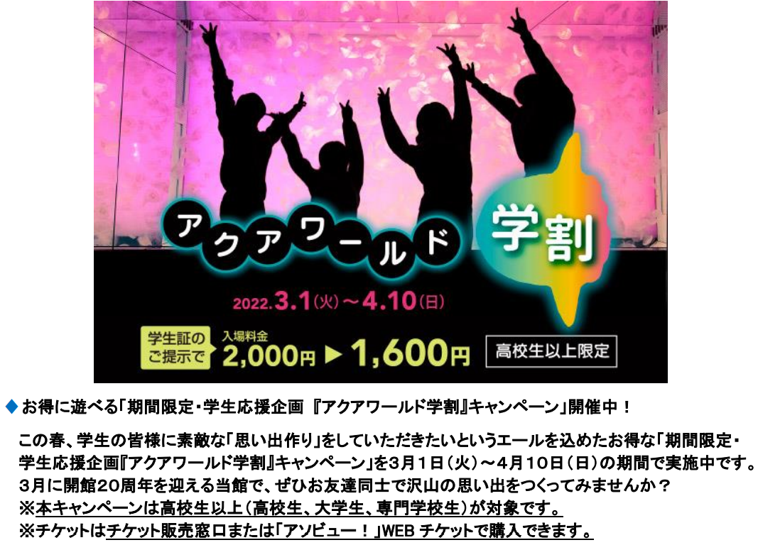 ♦「期間限定・学生応援企画『アクアワールド学割』キャンペーン」