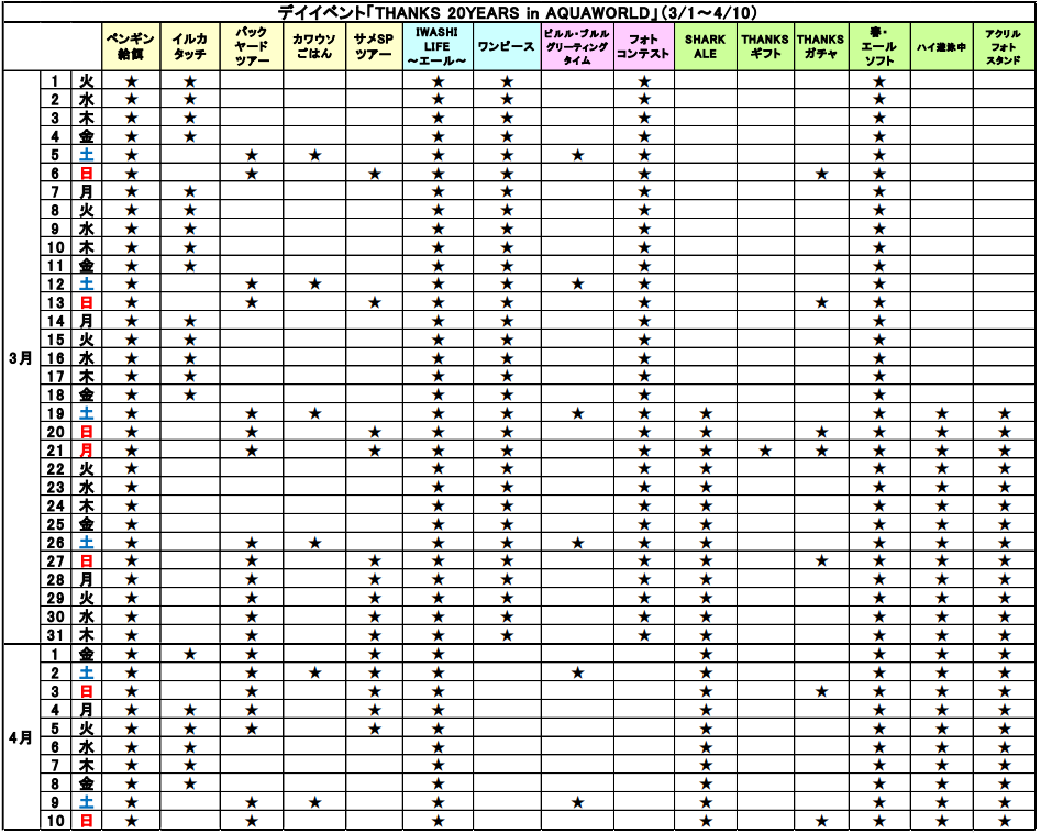 - 20年分の感謝を込めた特別企画「THANKS 20YEARS in AQUAWORLD」開催!