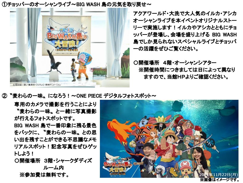 - 「ワンピース BIG WASH島の大冒険!IN アクアワールド・大洗」好評開催中!