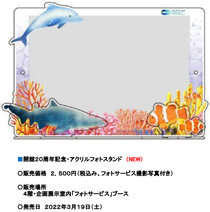 ♦開館20周年記念・アクアワールド・大洗オリジナルデザイン「アクリルフォトスタンド」発売!