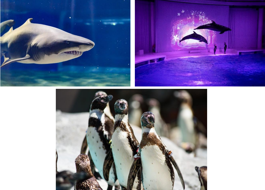 当館が飼育種類数日本一を誇るサメやかわいらしいイルカなど、アクアワールド・大洗で展示している生き物たちの魅力を表現したデザインとなっています。