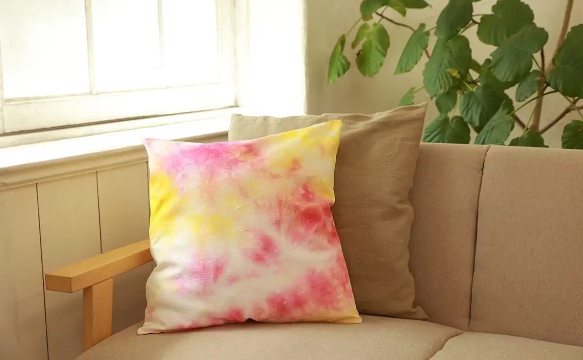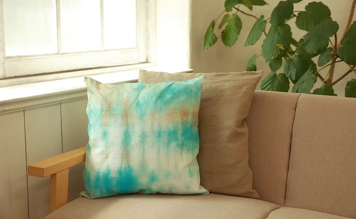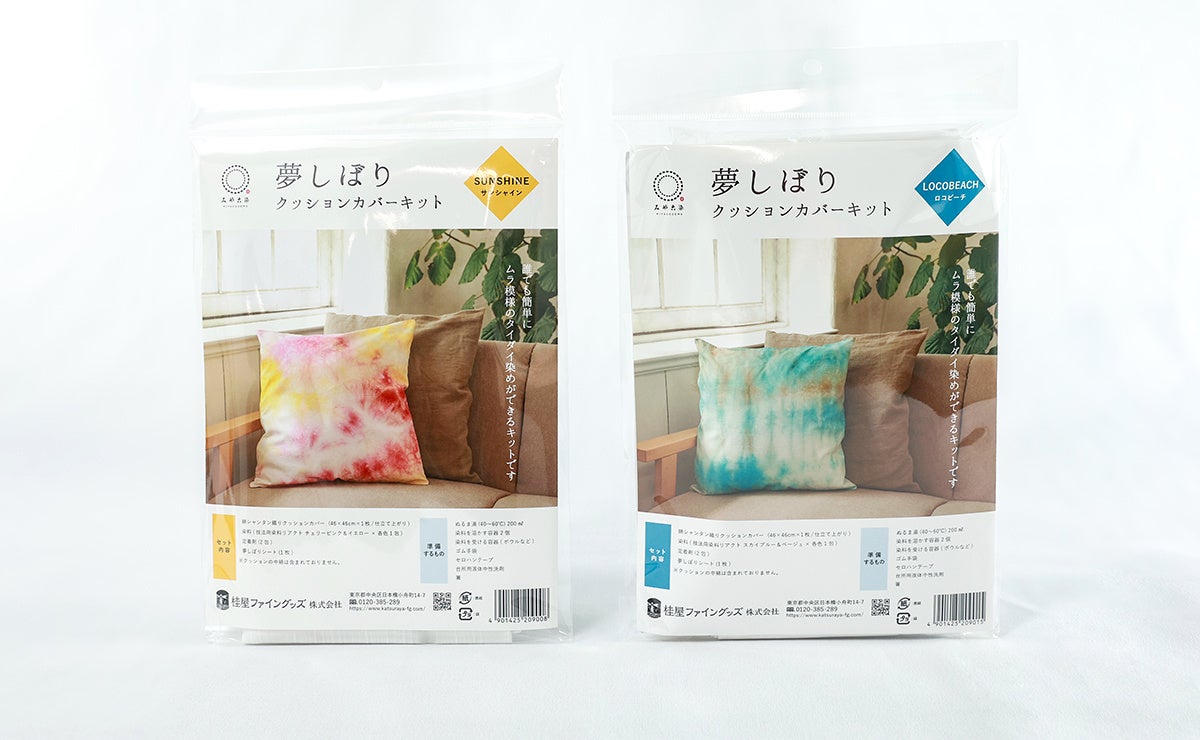 (手作りに挑戦! 自宅のリビングルームを絞り染めで彩る初夏にぴったりの染色キット登場)創業134年の染料ブランド みやこ染より「夢しぼり クッションカバーキット」4月に新発売!