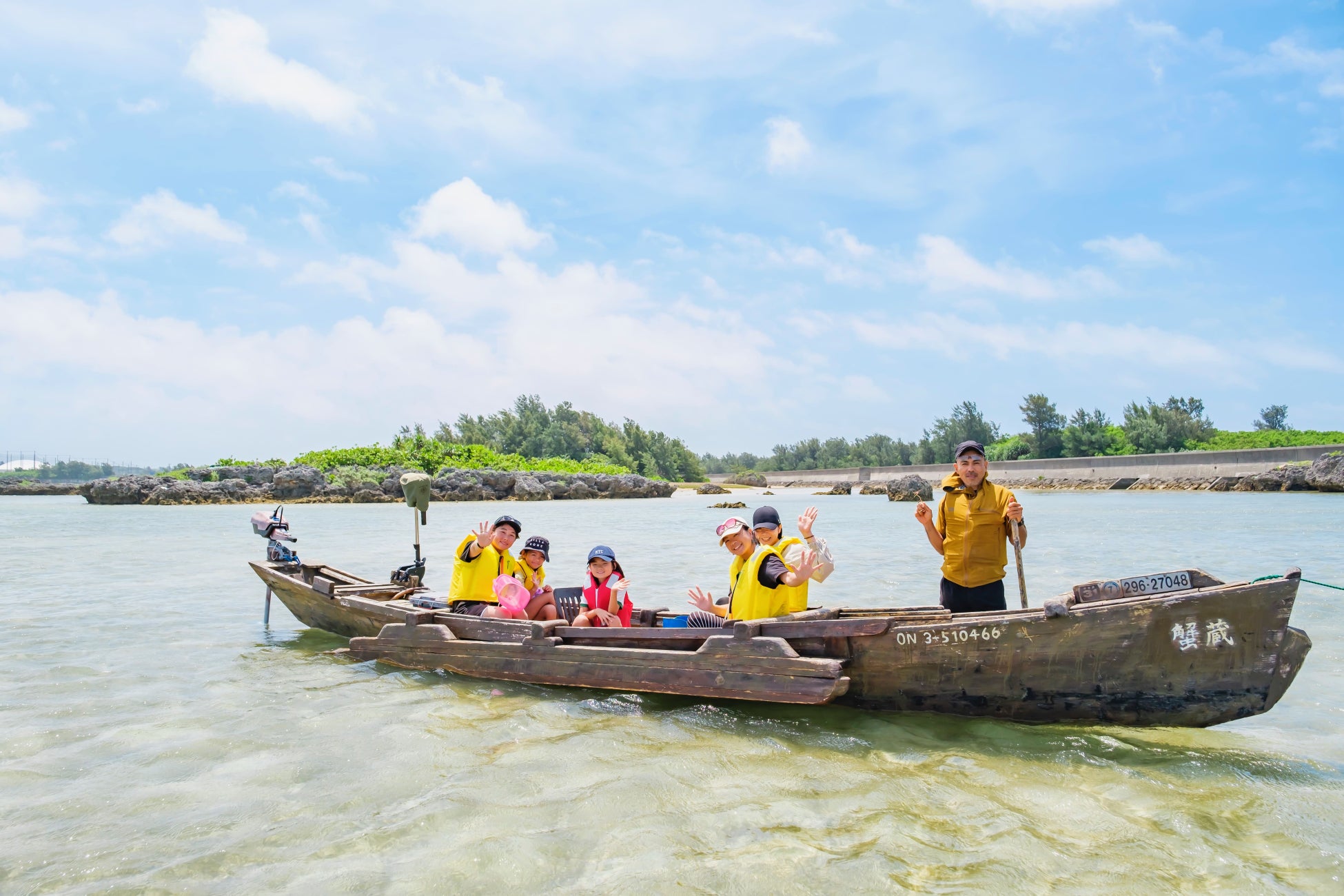 このツアーでは、沖縄の伝統的な木造漁船「サバニ」に乗り、ツアーガイドの吉浜崇浩氏と一緒に、海の生きもの観察をしながら、ジュゴンが「海草を食べたあと」や「うんち」を探して、ジュゴンの暮らしを観測する貴重な調査体験を楽しめます。