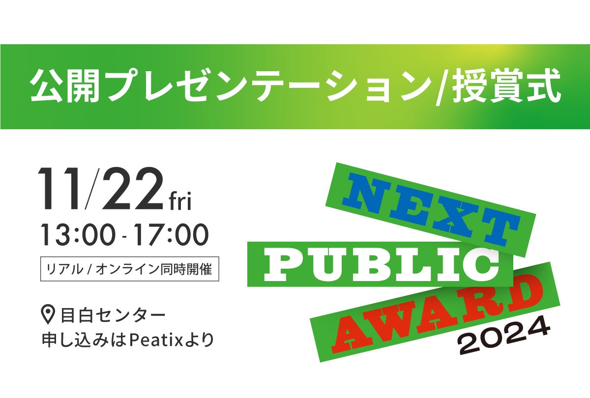 【11/22】未来のパブリックを示すプロジェクトを発掘・応援するアワード「NEXT PUBLIC AWARD2024」公開プレゼンテーション 開催!