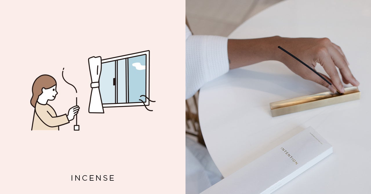 美しい孤を描く煙が空間を満たすインセンス(お香)は、キャンドルよりも香りが広がりやすく、お部屋の換気と合わせて空気を浄化してくれます。