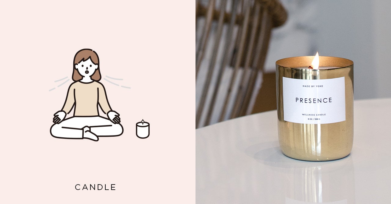 1つ1つインドの工場で手作業で作られた、ゴールドカラーに輝く真鍮のキャンドル。ヨガの理念をもとに調合されたフレグランスオイルが、あなたの感覚を研ぎ澄ませ、セルフケアの時間をより集中させてくれます。