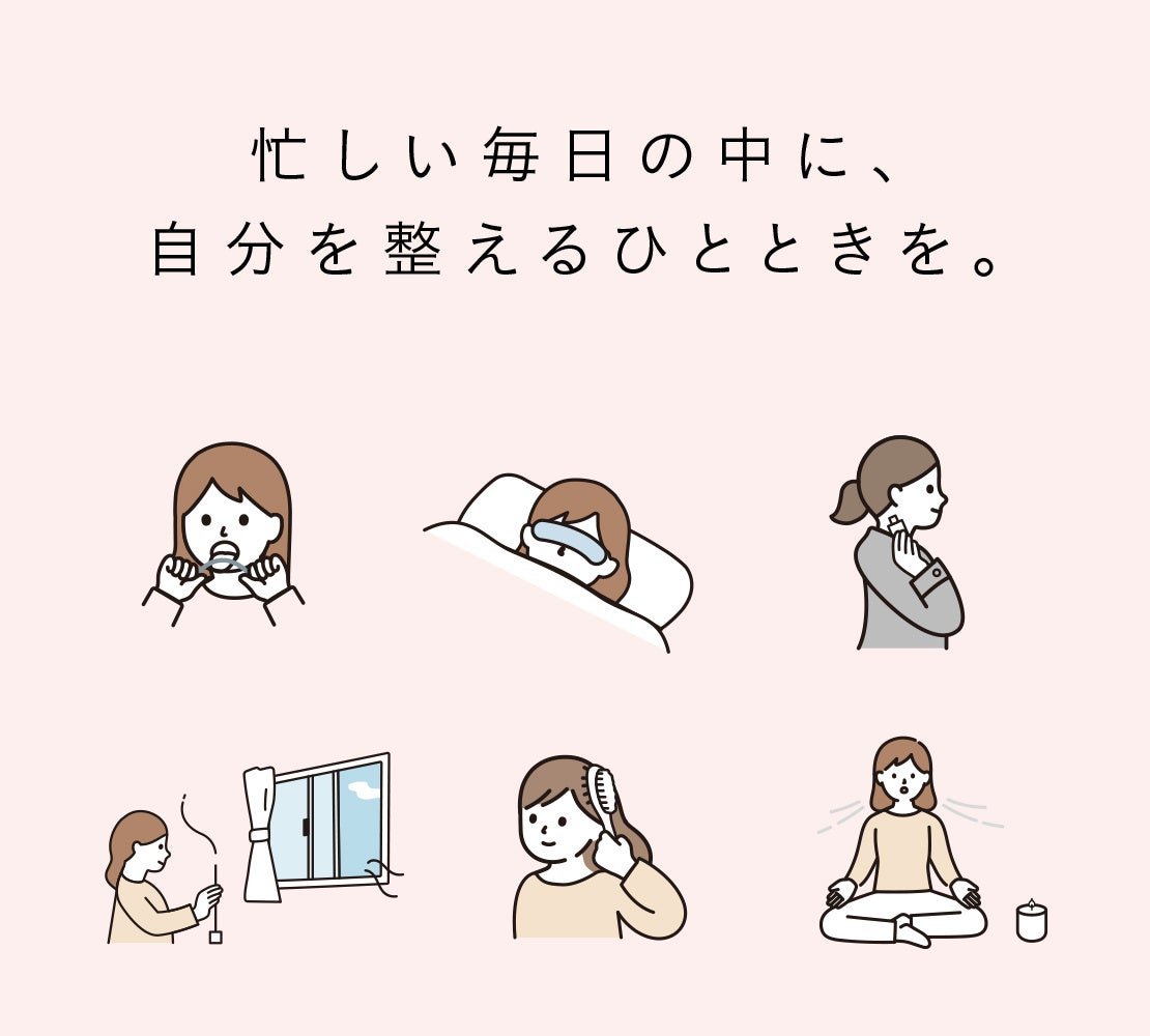 また、読書やメディテーションなど、静かに自分自身を見つめ直す時間や、ゆっくりとくつろぐひとときにおすすめ。