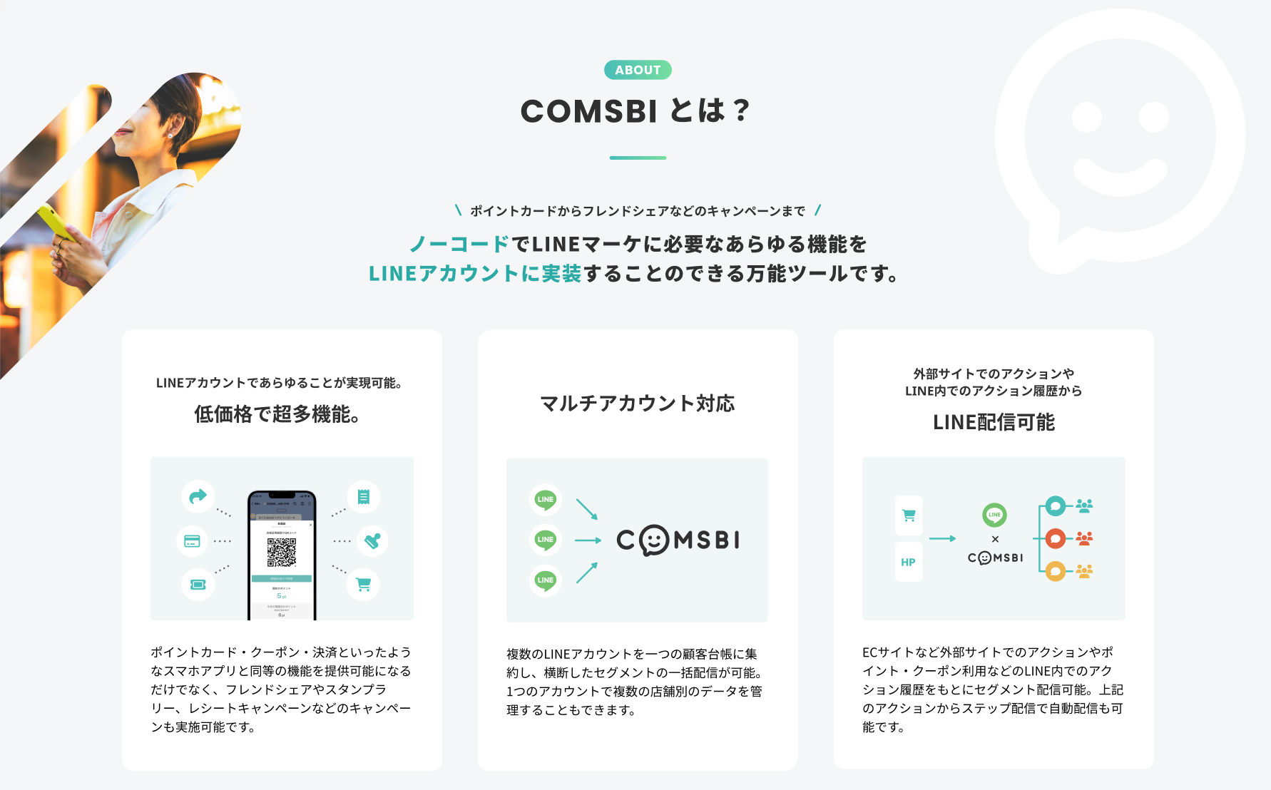 当社は、『「もっと便利に」「もっと楽しく」を創り出す』をミッションに、2023年2月にLINE CRMツール「COMSBI SaaS」を立ち上げました。