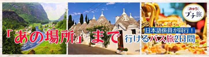 いつかは訪れたい憧れの南イタリア。[みゅう]プチ旅では、ナポリ発着で、絵画のように美しいアマルフィ海岸、不思議な景観が広がる世界遺産のアルベロベッロ、古代の面影を残すマテーラの洞窟住居を、日本語ガイドの丁寧な案内とともに2日間で効率よく巡ります。