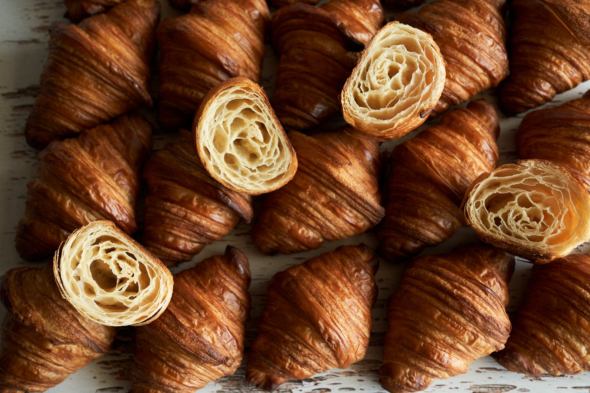 国産バターの香りとコクとともに小麦の風味もしっかりと感じるクロワッサン。クラストとクラムの食感のバランスを意識しながら、なめらかな内層になるよう生地を幾重にも折り込みます。小麦の香りが引き立つようにじっくりと焼き上げることで、バターの味わいもしっかりとありながら脂っこさを感じさせません。