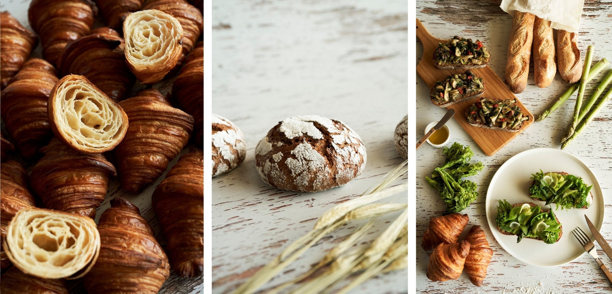 朝、昼、夜。シーンによって食べたいパンは異なります。常に同じパンを店頭に並べるのではなく、朝はクロワッサン、昼はお惣菜パンやスイーツパン、夜はワインに合うオリーブパンなど、その「今」のときにふさわしいパンをラインナップいたします。シーンごとに訪れて限定のパンに出会う楽しさがあります。