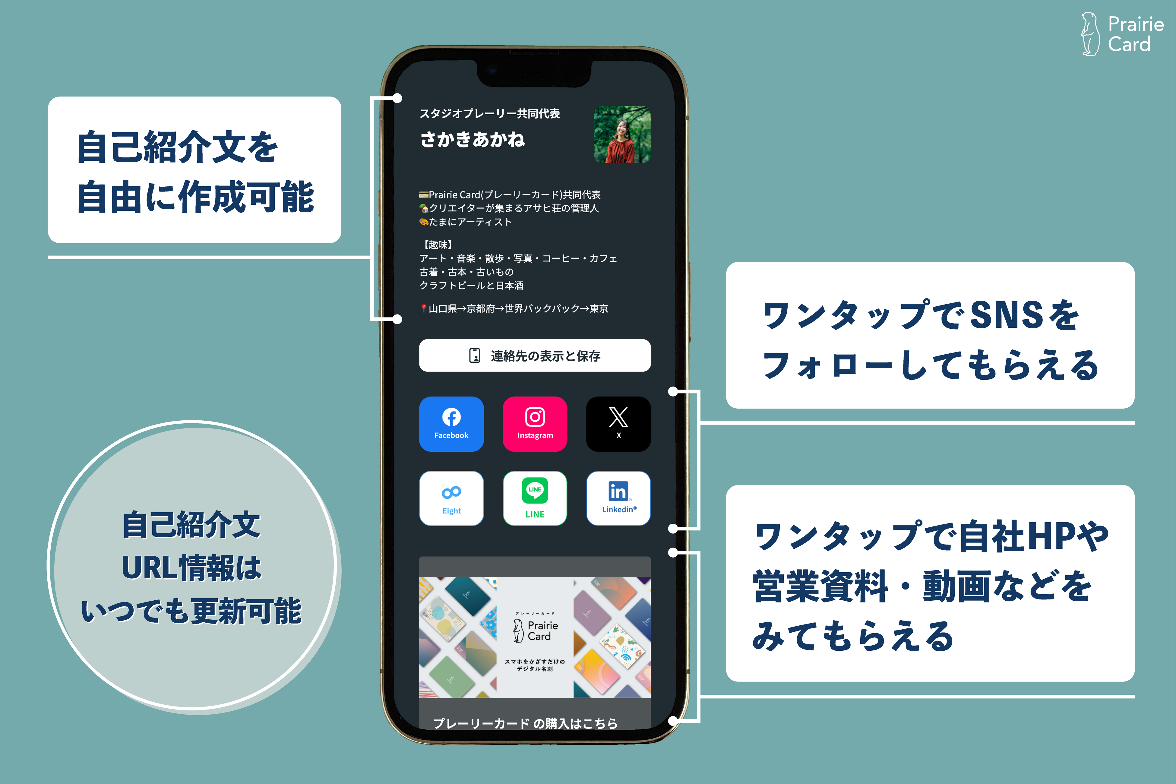 「新しい出会いの文化を創造し、コミュニケーションを豊かにする」をミッションに、スマホをかざすだけのデジタル名刺「プレーリーカード」の運営をしております。