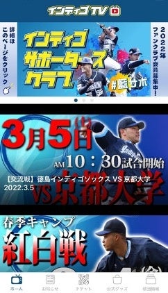 YouTube「徳島インディゴソックスチャンネル」を主に配信予定。