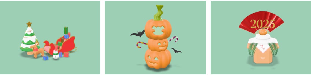 多彩なコンテンツ:季節やイベントに合わせたオブジェクトを選択可能。