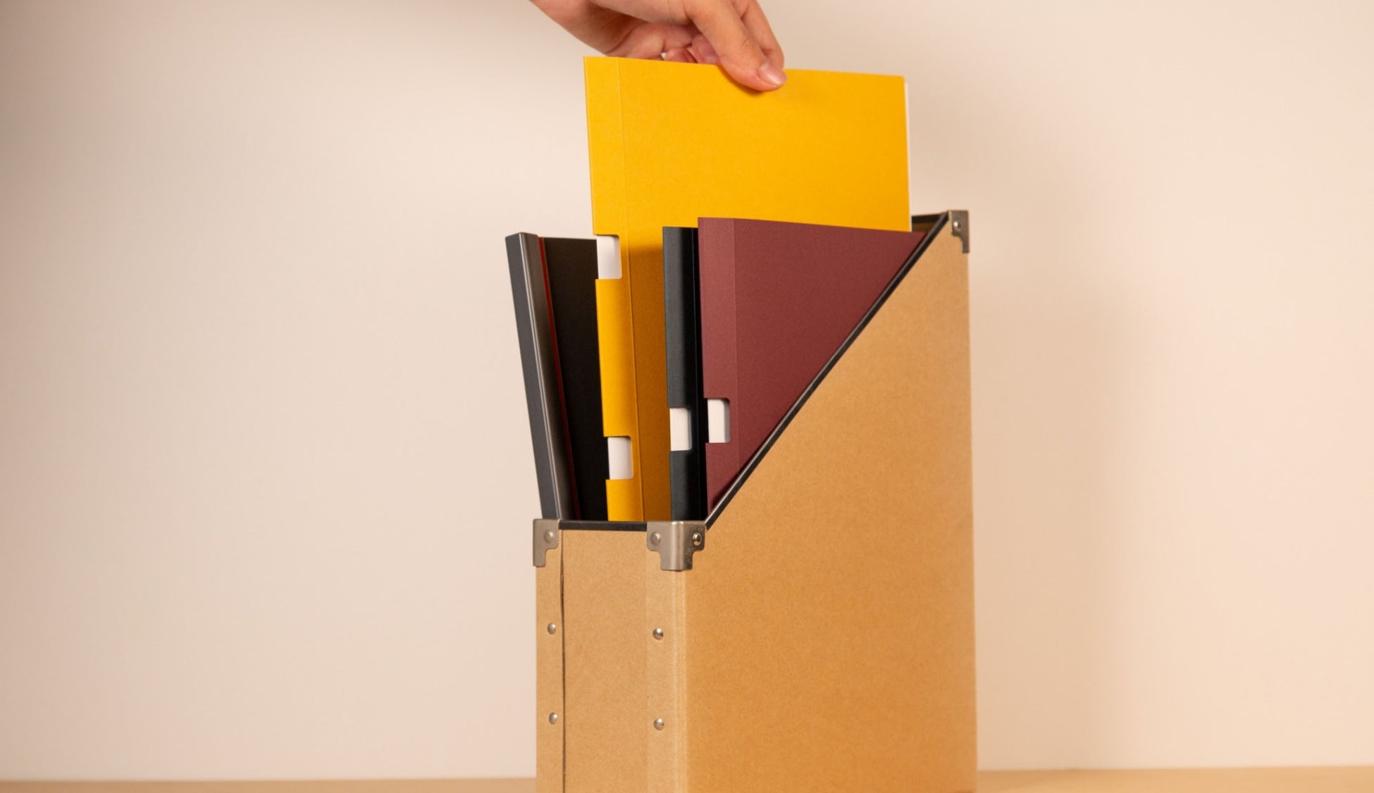 SlideNoteに綴じていたノートやプリントを、自宅やオフィスの書棚にテーマごとに保管しておくための紙製バインダーです。SlideNoteにそのままセットできるよう特殊な加工がされており、クリアファイルのように書類の整理に使うことも可能です。付属のスライドクリップを使用することで簡単に用紙を綴じることができます。