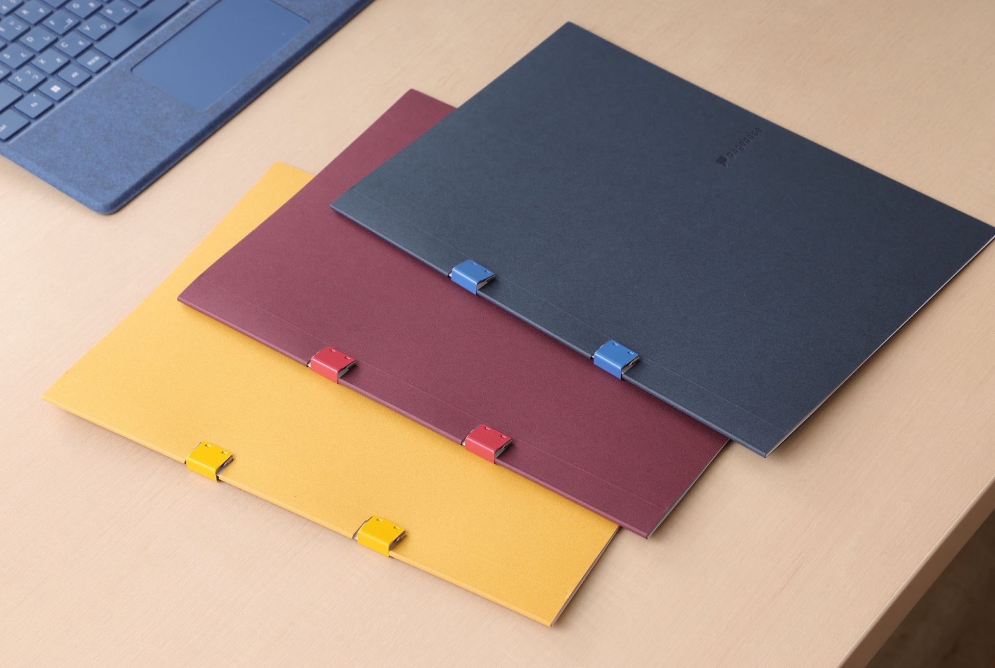 「SlideNote」は、ノートやコピー紙など、さまざまな用紙を簡単にノート化できるバインダーとして、2021年の発売以来、多くのユーザーから支持を受けています。全国のイベントに参加し、直接ユーザーの声を集約し、新しいサイズ展開や機能性向上を繰り返してきました。