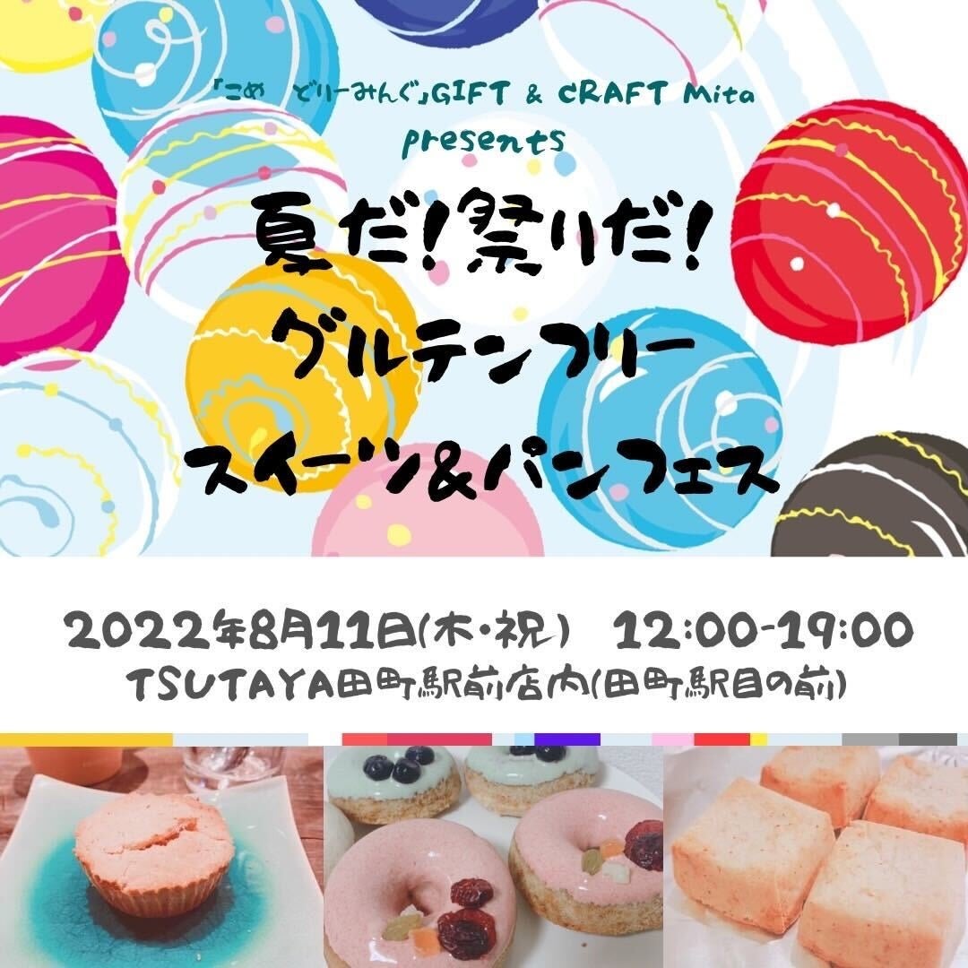 TSUTAYA田町駅前店協賛にて、【グルテンフリースイーツ&パンフェス】を2022年8月11日(木・祝)に開催いたします。