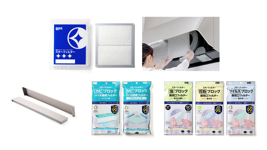 スターフィルター株式会社は、インスタグラムなどのSNSで「換気扇掃除が劇的にラクになる!」と話題のレンジフードフィルターを2014年より発売スタート。以来、エアコンや換気口などご家庭用の機能性フィルター製品を扱ってまいりました。