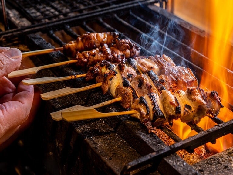 野乃鳥 人形町店は、2023年7月に人形町駅前のエムズクロス人形町にオープン。ジビエのような肉質を持った京都の地鶏「丹波黒どり」と「京鴨」を、アラカルトだけでなく、野乃鳥の代表・野網氏が試行錯誤を重ねた「おまかせコース」で提供しています。野乃鳥の焼き鳥は、特製の銅板の蓋を使用したオリジナルの焼き台で、火力が強い備長炭を使って焼き上げます。素材の旨味を最大限に引き出し、炭火の香ばしさ「薫香」が食欲をそそる焼き鳥と、土鍋で炊いたご飯との相性は格別です。