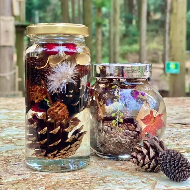 地域の山で集めた自然の花や葉、木の実を使った本格的なクラフト体験(フレッシュリースやハーバリウムなど)