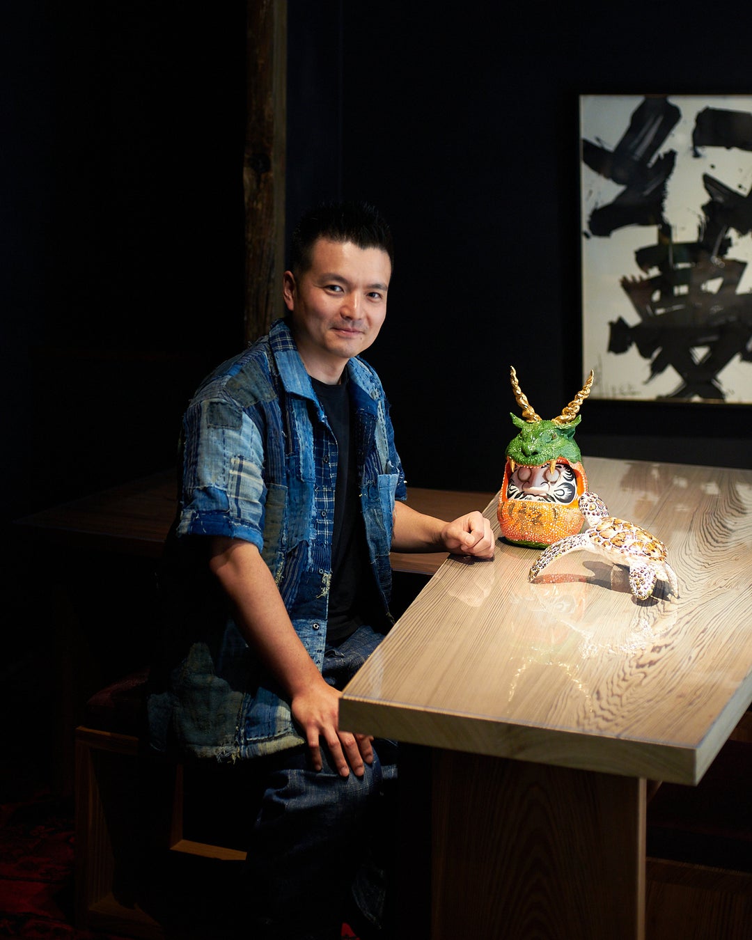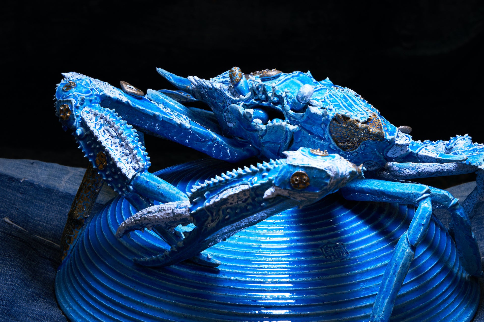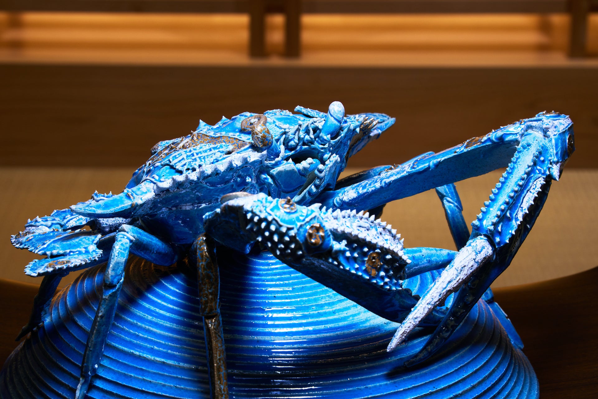 “ファッション”をテーマに、今井氏の代表的な作品である「蟹」をベースに、KUONのボロジャケットからインスピレーションを受けたスペシャルな作品を制作しました。