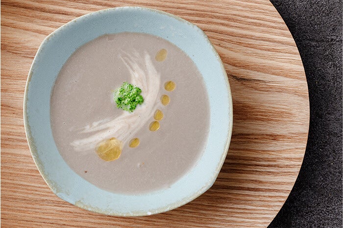 - マッシュルームとオーツミルクのポタージュ 〜ケールのペースト〜