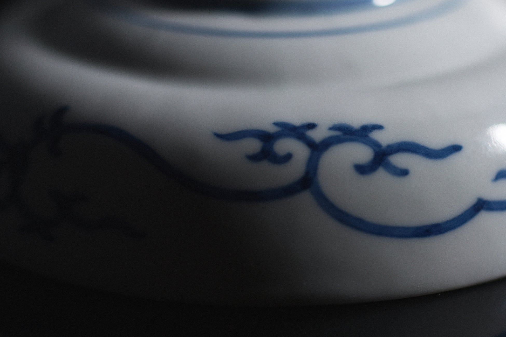 内抱えぎみに二段に立ち上がる造形も、現代の製品にはないオリジナリティの高いもので、泉山陶石独特の味わい深い素地と、熟練した職人の手描きによる絵付けと相まって、唯一無二の有田焼に仕上がりました。