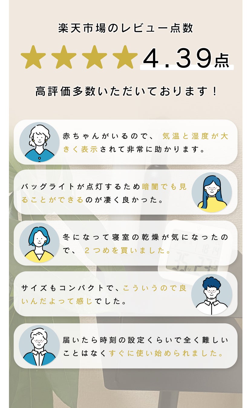 その第一弾プロジェクトとして、ロングセラー商品である『mitasデジタル温湿度計』の改良に取り組みました。2022年春から試行錯誤を続けて、ようやく完成した製品になります。楽天市場内の商品レビューから7つの改善点を盛り込んだ、皆様の声を反映した製品になっています。